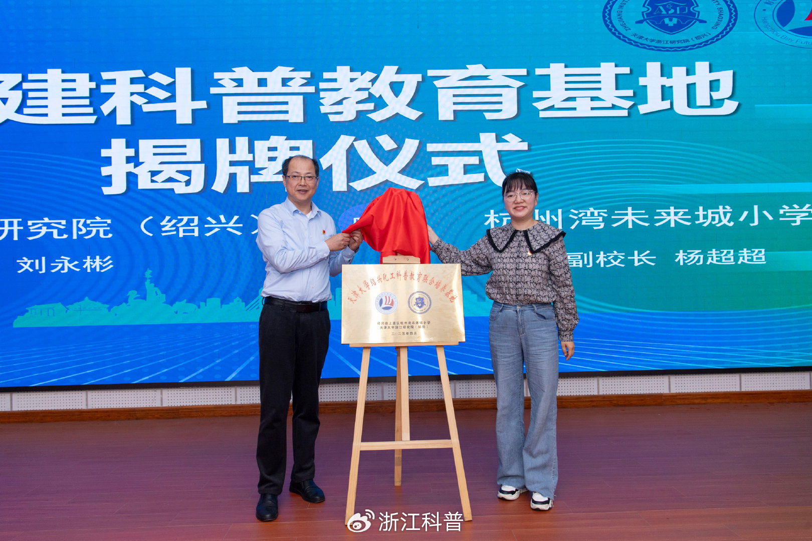 4月24日,天津大学浙江研究院(绍兴)与上虞区杭州湾未来城小学携手,以“党建红”引领“科技蓝”,共同举办“科普活动走进未来城小学暨共建科普教育基地揭牌仪式”。