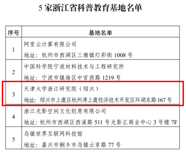 喜报!天津大学浙江研究院(绍兴)入选浙江省科普教育基地