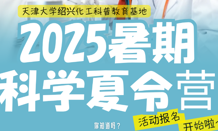 7月5日上午,由天津大学浙江研究院(绍兴)化工科普教育基地组织的“科学试听营”活动报名开始啦!