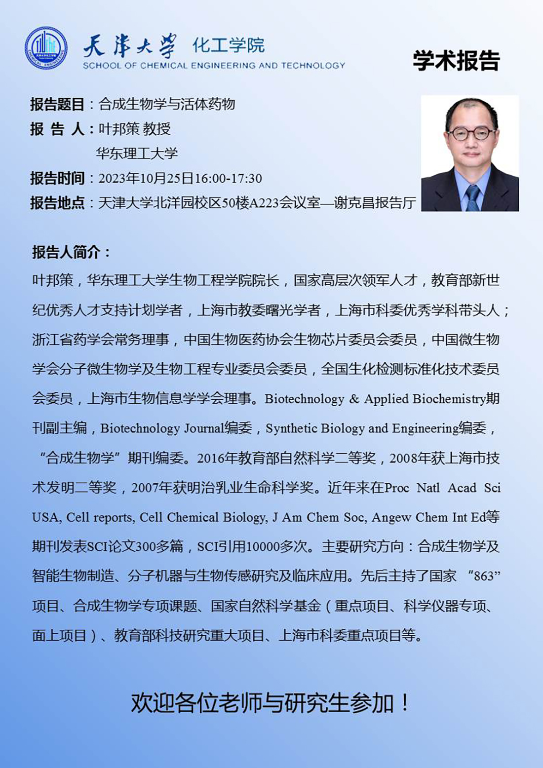 合成生物学与活体药物-华东理工大学叶邦策教授